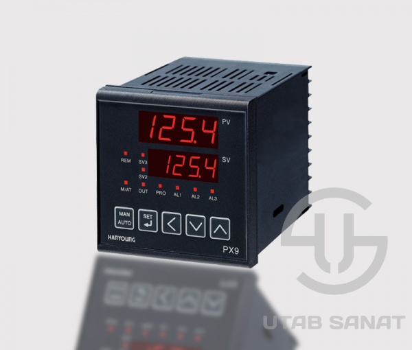 این محصول یک کنترلر حرارت دیجیتال از شرکت هانیانگ می باشد. این کنترلر قادر به کار با سنسورهای حرارتی مختلف شامل 13 نوع ترموکودل با تیپهای مختلف۷ دو نوع RTD، سه نوع ورودی آنالوگ ولتاژ و ورودی آنالوگ جریان می باشد. این کنترلر دارای یک خروجی رله ای با کنتاکت NO+NC به عنوان خروجی اصلی و دو خروجی SSR و یا سیگنال آنالوگ 4 الی 20 میلی آمپر به عنوان خروجی اصلی یا Retransmission بوده و همچنین دارای دو عدد رله با کنتاکت NO به عنوان خروجی آلارم می باشد. همچنین این محصول دارای الارم تشخیص سوختن هیتر (HBA) نیز می باشد. این کنترلر دارای امکان ارتباطی RS485 نیز بوده که از این طریق می تواند در شبکه های صنعتی قرار گیرد. این کنترلر دارای حالت Ramp/Soak می باشد. این حالت این امکان را می دهد تا محدوده حرارتی را به قسمتهای مختلف تقسیم بندی کرده و در هر قسمت حرارت را با شیب معین (Ramp) و فابل تنظیم افزایش یا کاهش داده تا به نقطه بعدی برسیم و سپس برای مدت معینی در این حرارت مانده (Soak) و سپس مجددا با شیب دیگری به نقطه بعدی برسیم. به عبارتی می توان حرارت را به صورت پله ای افزایش یا کاهش داد. به نحوه افزایش یا کاهش حرارت طبق شیب های مختلف یک الگو گفته می شود. هر الگو شامل پله های مختلف (Segment) می باشد که هر پله می تواند یک شیب مثبت یا منفی و یا یک سکون (Soak) باشد.